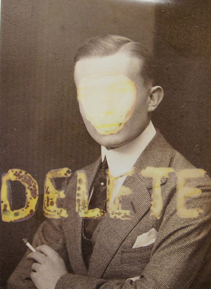 I treat the prints with sulfuric acid. The image dissolves into its component parts. The gray passport photography ― just a few seconds recognizable ― first explodes into colors before the chemical dissolution process ends on the resistant white titanium oxide surface of the photo paper. In addition, the gelatin can be seen, in which the color pigments are bound. The dissolution of material often takes place so slow, that one is not able to notice it. In using the acid I accelerate the dissolution.
